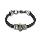 Bracelet en cuir noir tressé, avec des breloques en acier représentant, notamment, une tête de mort.