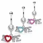Piercing pour nombril avec pendentif représentant un coeur et le mot "Love".