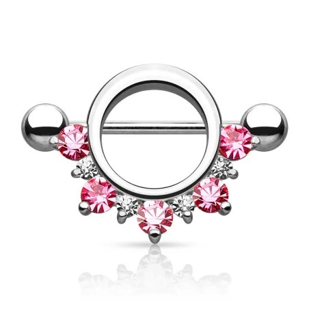 Piercing de téton en titane, design cercle orné de strass brillants. Léger, hypoallergénique et raffiné.