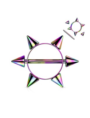 Piercing pour le téton, représentant un bouclier avec des spikes.