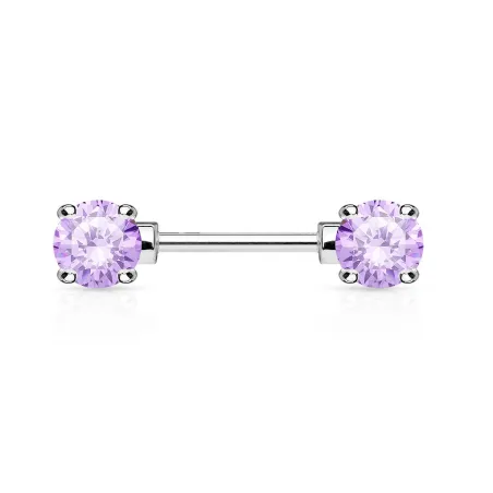Piercing téton améthyste – Barre droite acier et pierre naturelle
