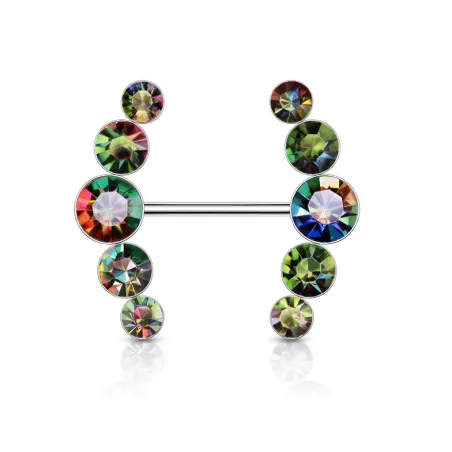 Piercing barbell, pour le téton, représentant un éventail serti de cristaux.