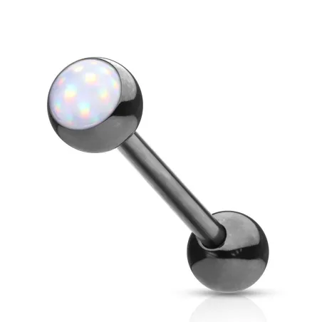 Piercing pour la langue serti d'une pierre à effet lumineux.