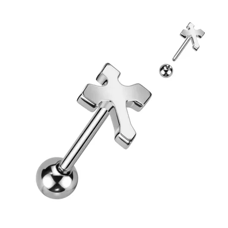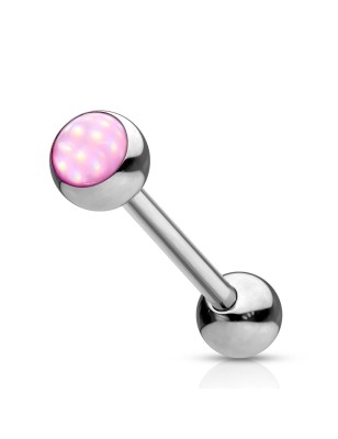 Piercing pour la langue en acier chirurgical avec une bille et une étoile phosphorescents dans le noir.
