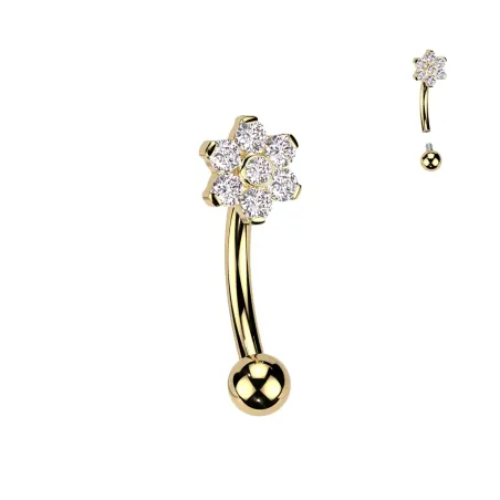 Piercing banane en titane ASTM F136 doré à l’or 24K, disponible en plusieurs tailles. Idéal pour arcade, téton et rook.