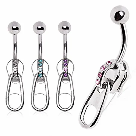 Piercing de nombril serti d'une pierre solitaire en zirconium.
