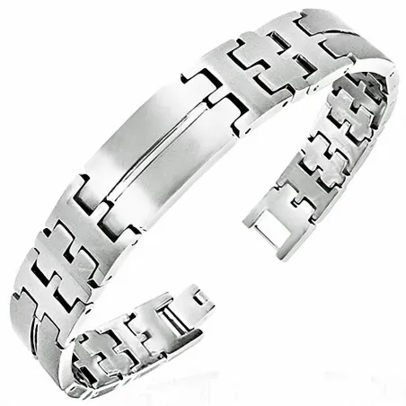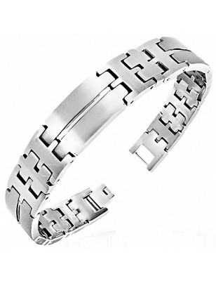 Bracelet homme en tungstène argenté, élégant et moderne, avec maillons stylisés.