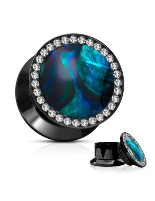 Piercing plug pour le lobe de l'oreille, en acrylique noir, sertis de strass.