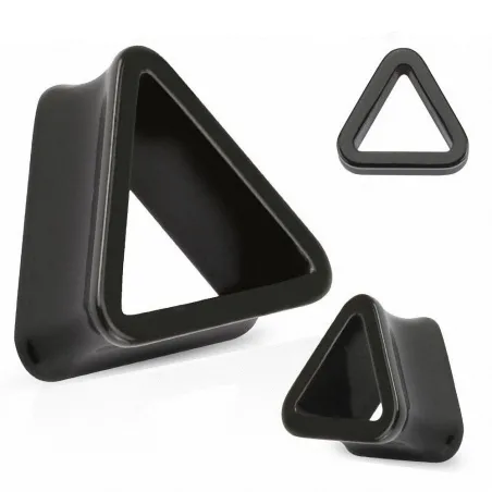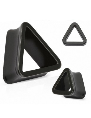 Piercing plug pour le lobe de l'oreille, en acrylique noir, représentant un triangle.