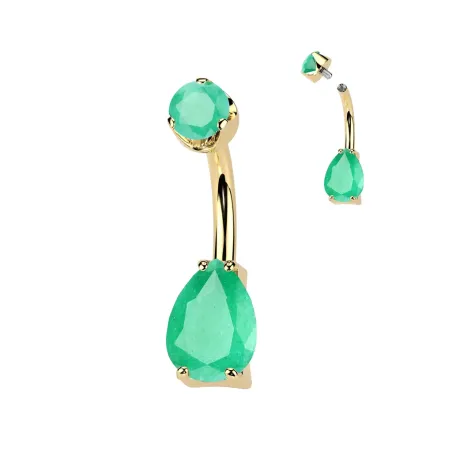 Piercing pour le nombril en acier chirurgical doré, serti d'une pierre en opale synthétique.