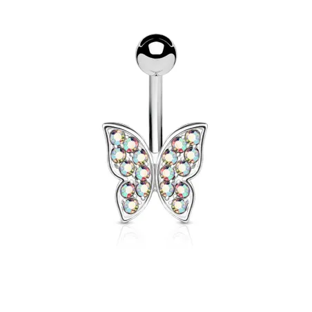 Piercing nombril papillon bleu – Acier chirurgical & strass étincelant