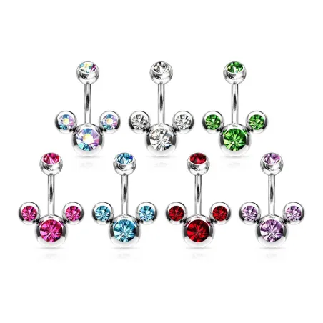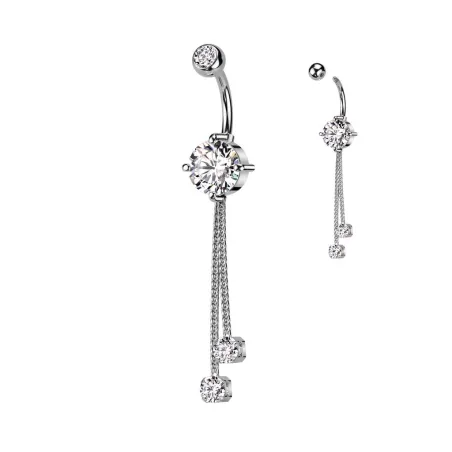 Piercing de nombril en acier, orné d’un strass principal et d’une rangée de cristaux étincelants. Chic, résistant et parfait pour un look raffiné.