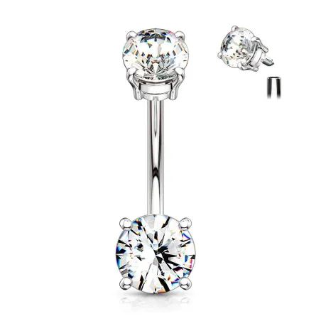 Piercing nombril Acier Chirurgical Double Strass Blanc