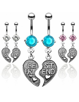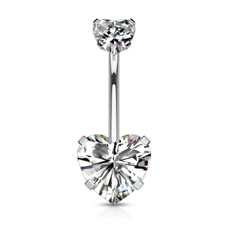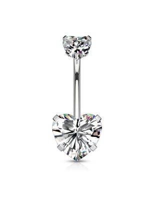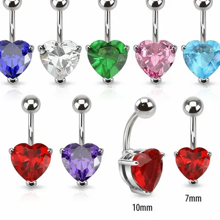 Piercing pour le nombril en acier chirurgical serti d'une pierre en forme de coeur.