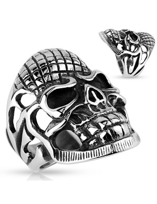 Bague pour homme en acier inoxydable, représentant un crâne avec un motif quadrillé.
