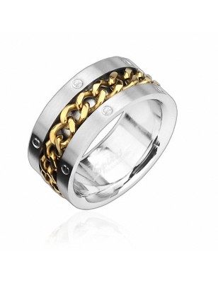 Bague pour femme, en acier inoxydable, représentant trois anneaux de couleurs différentes : argenté, rosé et doré.