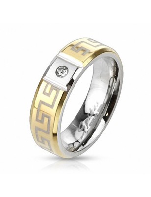 Bague en acier inoxydable avec motif grec gravé. Élégante, moderne et résistante, parfaite pour homme et femme.