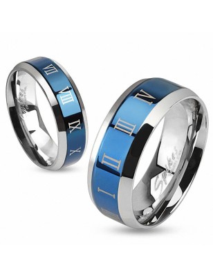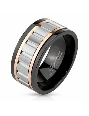 Bague mixte en acier inoxydable, avec une rainure centrale noire.