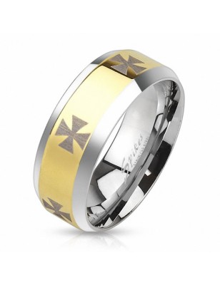 Bague pour homme en acier inoxydable noir, représentant des croix.