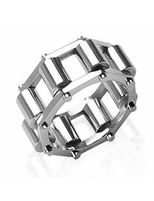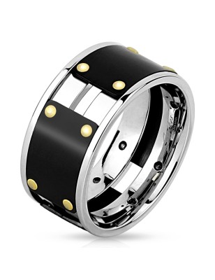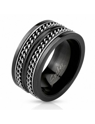 Bague pour hommes en acier inoxydable noir, avec deux chaines.