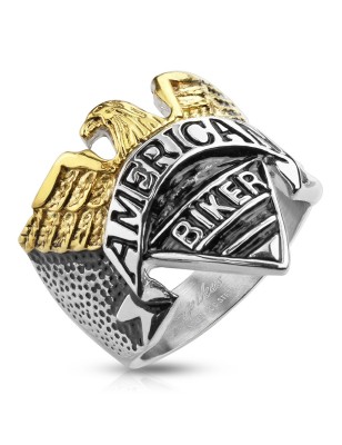 Bague pour homme en acier inoxydable, style "biker", représentant un aigle.