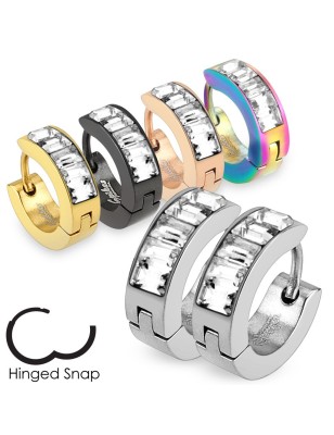 Bague en acier inoxydable, avec une ligne dorée au centre de l'anneau, serti de trois pierres en zirconium blanc.