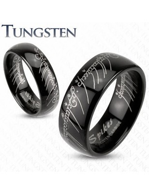 Bague en titane solide, avec une bande noire au centre de l'anneau.