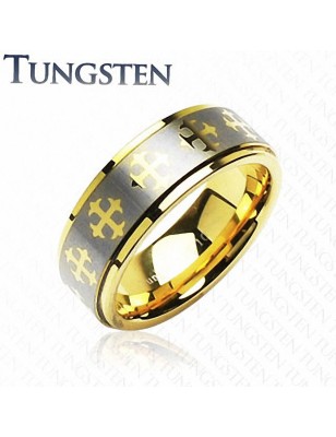 Bague pour homme en Tungstène, plaqué Or, brossé, représentant des croix.