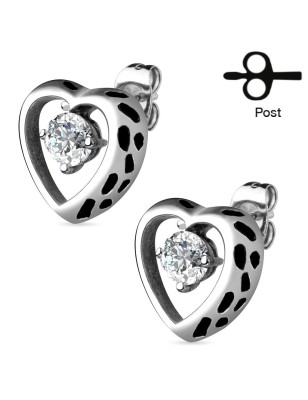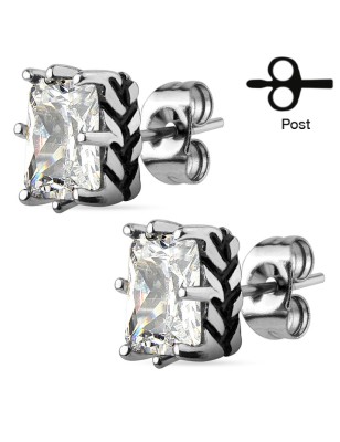 Paire de boucles d'oreille clous, en acier inoxydable, représentant une couronne sertie d'une pierre en zirconium blanc.