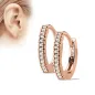 Paire de boucles d'oreille anneaux, en acier inoxydable, plaqué or rose 14 carats, pavés de pierres en zirconium blanc.