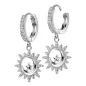 Paire de boucles d'oreilles, en acier chirurgical 316L, en forme d'anneaux pavés de zirconiums avec pendentif représentant un soleil, un croissant de lune et une étoile.