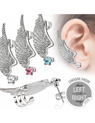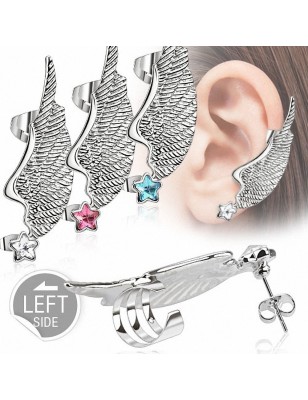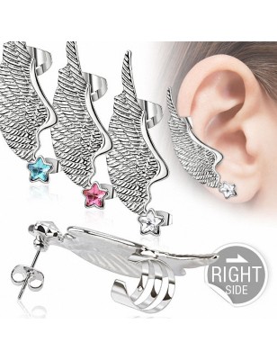 Ce modèle représentant une aile d'ange sertie d'une pierre en zirconium en forme d'étoile.