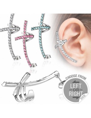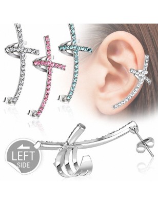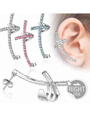 Boucle d'oreille de type clous, en acier chirurgical, avec une partie se clipsant sur le haut de l'oreille.