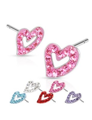 Paire de boucle d'oreille type "clous" en acier chirurgical, représentant deux boules serties de strass.