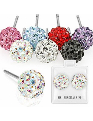 Paire de boucles d'oreille type clous, en acier chirurgical, représentant deux boules serties de multiples cristaux férido.