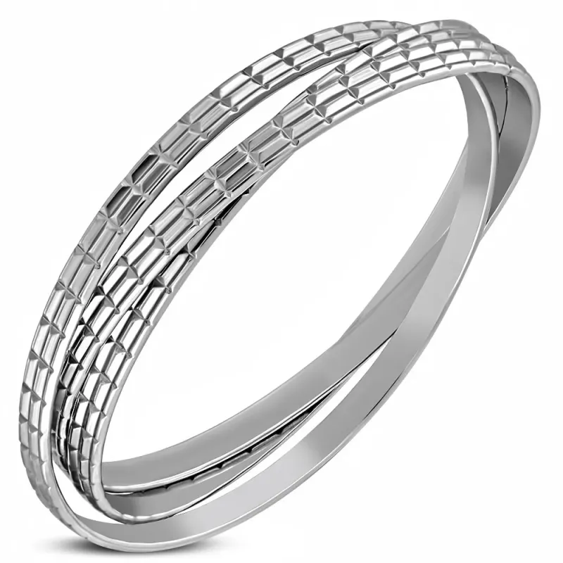 Triple bracelets enlacés, en acier inoxydable argenté, motif pyramide.