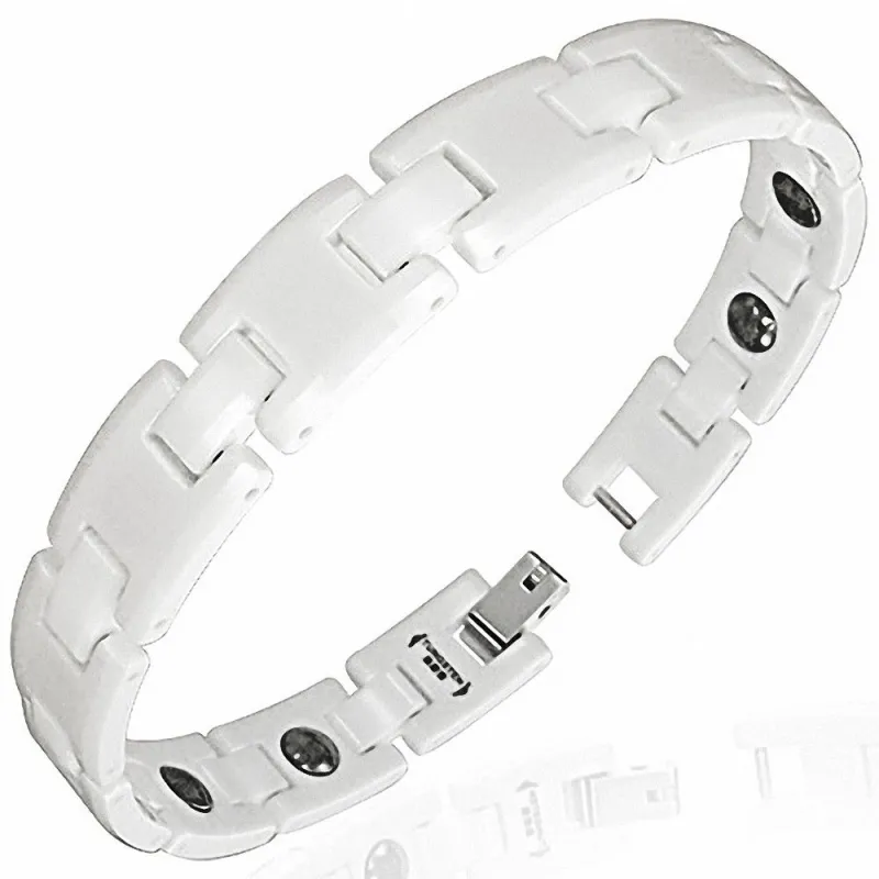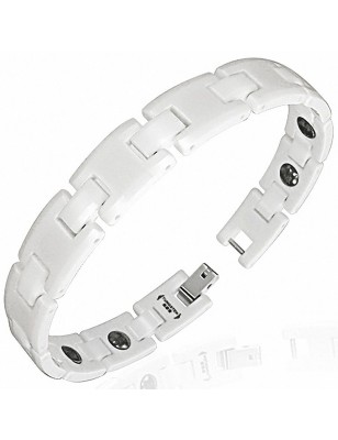 Bracelet magnétique en céramique blanche maillons rectangulaires