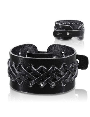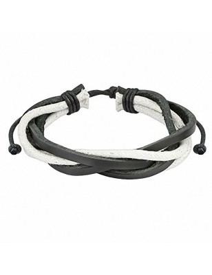 Bracelet en cuir blanc, avec deux brins tressés au centre de celui-ci.