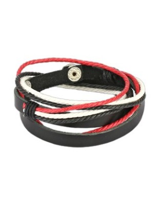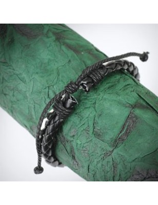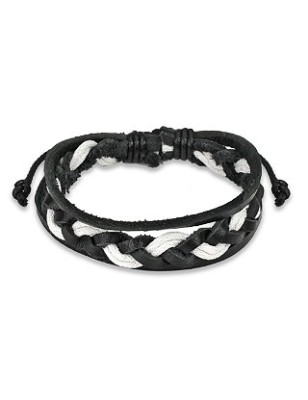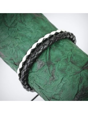 Bracelet pour homme en cuir noir et blanc tressé.