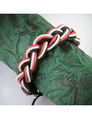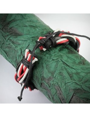 Bracelet pour homme en cuir noir blanc et rouge, composé de brins croisés.