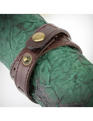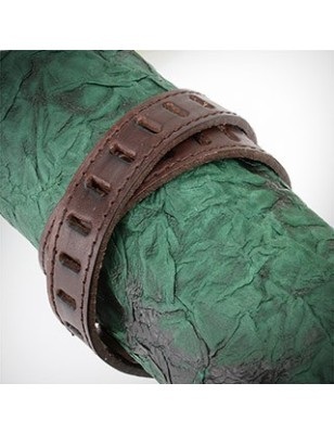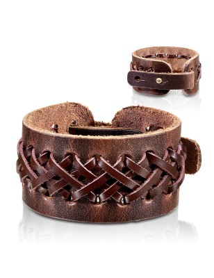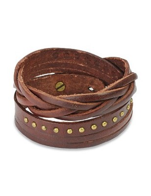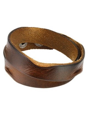 Bracelet double en cuir marron, parcouru de fentes sur toute sa longueur.