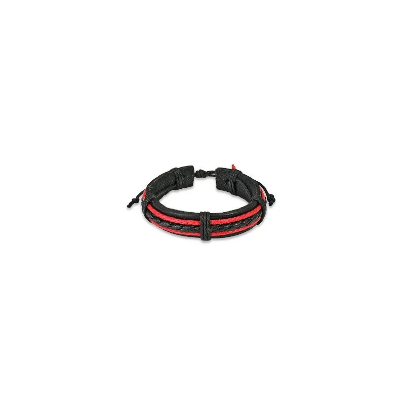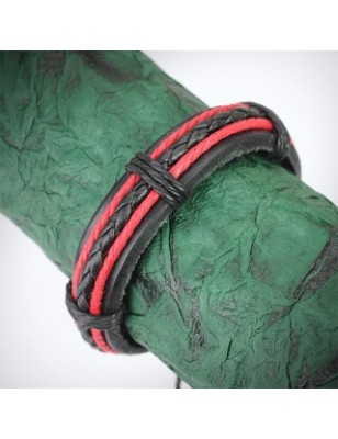 Bracelet cuir noir et rouge