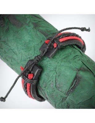 Bracelet en cuir noir et rouge.
