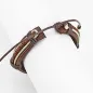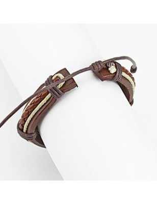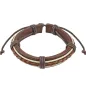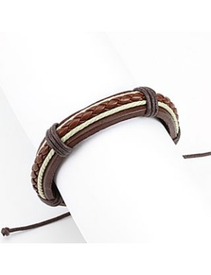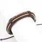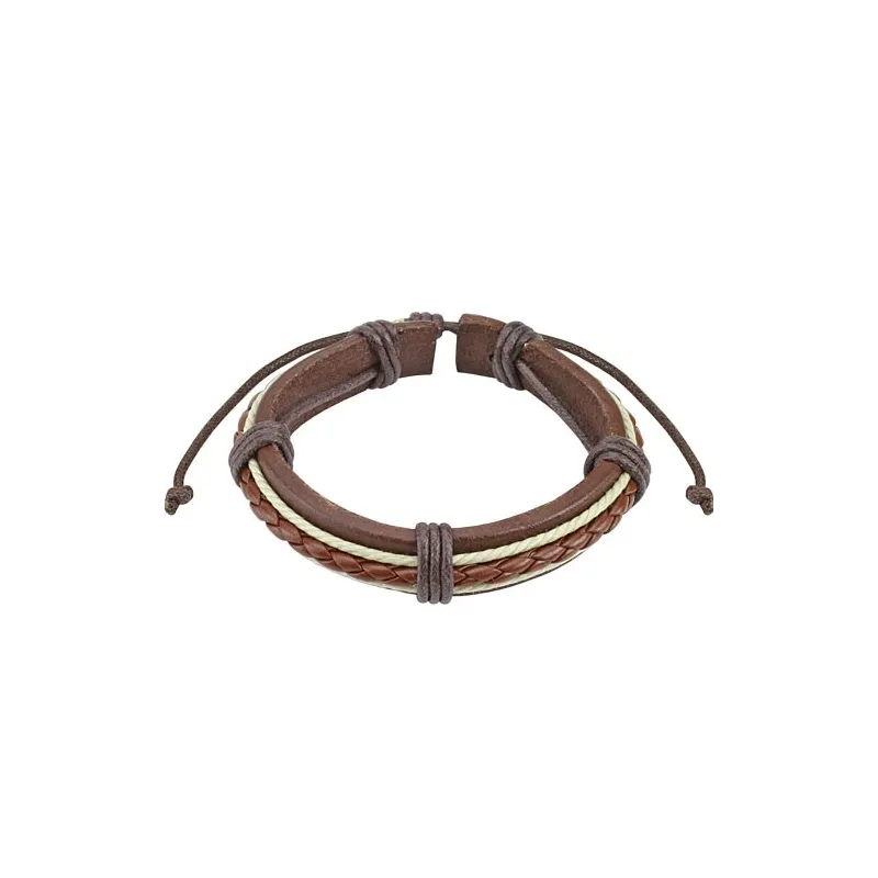 Bracelet en cuir marron, avec deux brins tressés beige, et un marron.