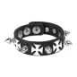 Bracelet en cuir noir avec clous et croix en acier, style rock et rebelle.