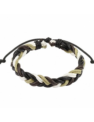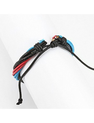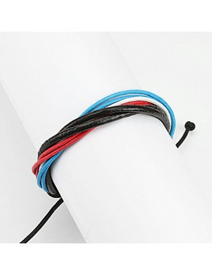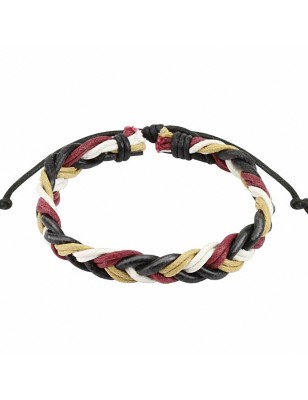 Bracelet pour homme et femme, en cuir avec des cordes de couleur rouge, blanche, bleu et noir.
