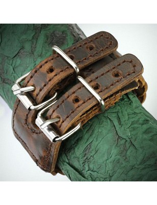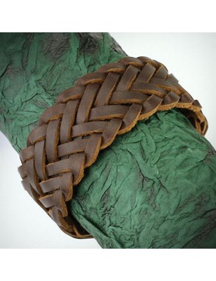 Bracelet pour hommes et femmes, en cuir marron tressé, avec une fermeture par une double ceinture.