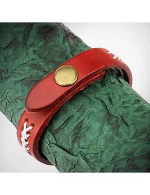 Bracelet pour hommes et femmes, en cuir rouge, avec des points de suture.