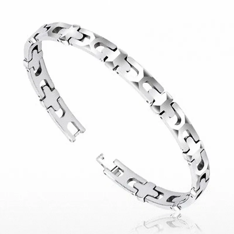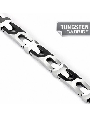 Bracelet homme en tungstène argenté, élégant et moderne, avec maillons stylisés.