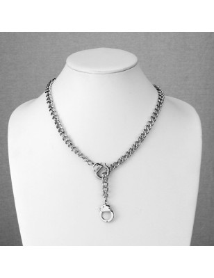 Collier en acier inoxydable avec fermoirs menottes. Original, tendance et robuste, parfait pour un look audacieux et moderne.